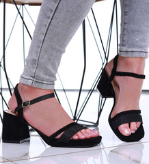 Wizytowe czarne sandały na klocku /B5-3 16340 G241/