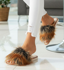 (ilość produktów: 1148)Rude damskie kapcie z futerkiem /E5-1 10987 S197/