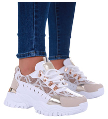 Beżowe sportowe buty z perełkami /D7-3 17342 T641/