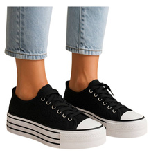 (ilość produktów: 1145)Czarne ażurowe trampki na platformie /B6-3 17951 T383/