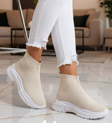 Beżowe trampki z wysoką cholewką /G13-3 11121 W206/