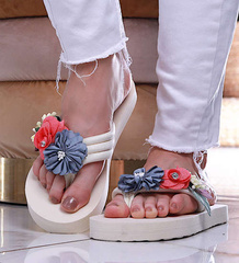 Czerwone damskie klapki z cekinami /B5-21 13892 T143/
