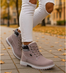 Zimowe botki trapery z futerkiem Różowe /C1-2 18279 T244/
