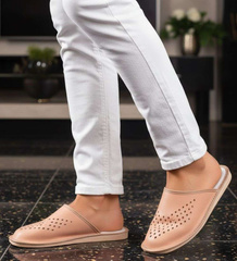 Beżowe klapki z efektownym futerkiem /F4-1 3259 S195/