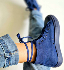 (ilość produktów: 2208)Klasyczne granatowe trampki damskie jeansowe z wysoką cholewką /H2 16708 G9-84/