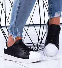 Wiązane czarne damskie trampki na elastycznej platformie /A4-3 15695 D T184/