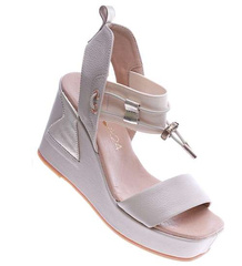 Skórzane beżowe sandały damskie /G13-3 14287 T179/