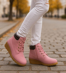 Różowe sznurowane botki na niskim koturnie /E9-2 16625 T7-38/