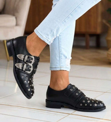 Czarne damskie półbuty z ćwiekami /D9-3 13717A T185/