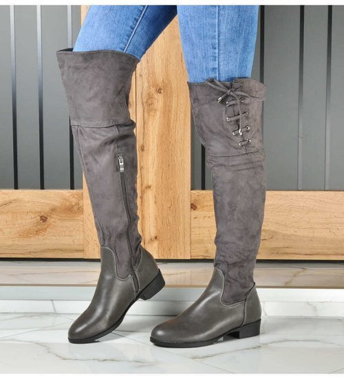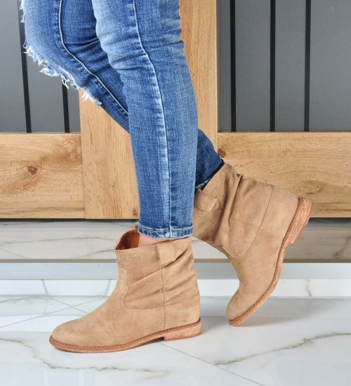 Beżowe kozaki muszkieterki na płaskim obcasie /E1-2 18602 G366/