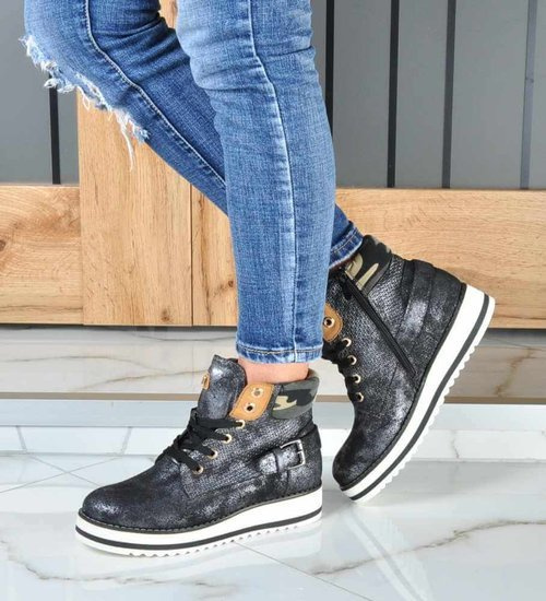Wysokie czarne botki damskie /J5-3 16947 T230/