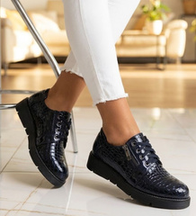 Czarne półbuty mokasyny na platformie /A2-2 12705 T598/