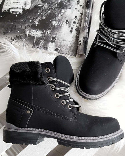 Czarne ocieplane botki workery sznurowane /A10-118576 W386/
