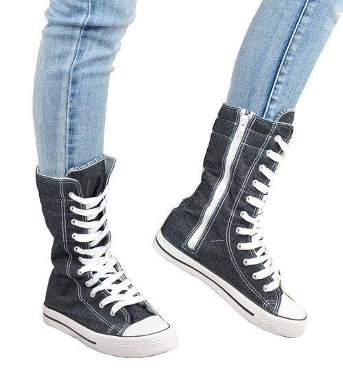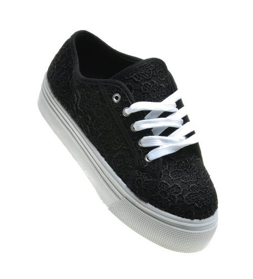 Materiałowe trampki na platformie sznurowane /J5-1 18492 W6/