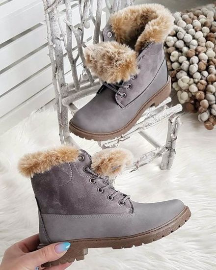 Zimowe szare botki trapery z futerkiem /A4-2 18613 T319/