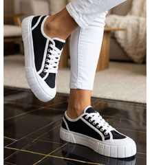 Sznurowane trampki damskie na wysokiej podeszwie /D7-2 13769 S197/