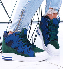 Sznurowane granatowo zielone trampki sneakersy na niskim koturnie /E2-3 15824 D430/