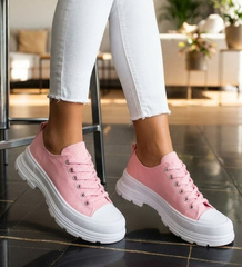 Sznurowane trampki damskie Różowe /D2-3 12370 S314/