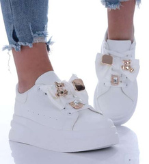 Białe wiązane damskie trampki na platformie /G13-3 16913 T531/