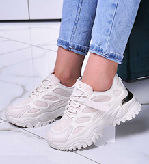 Sznurowane sneakersy damskie Beige /C7-1 10671 W435/