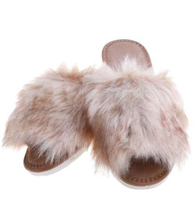 Beżowe damskie klapki z kudłatym futerkiem Premium /G8-1 11405 S292/