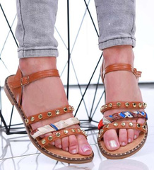 (ilość produktów: 68)Karmelowe damskie sandały na płaskim obcasie /E6-2 16327 T109/