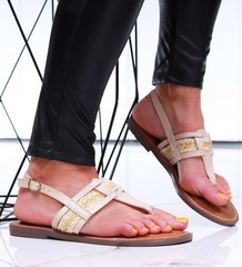 Beżowe damskie sandały na płaskim obcasie /F3-2 16328 T109/