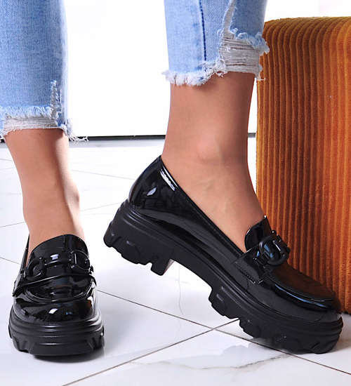 Czarne botki na grubym obcasie i platformie /C5-3 18312 T432/