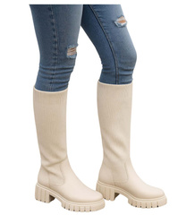 Beżowe loafersy mokasyny na platformie /B3-2 12362 T791/