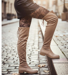 (ilość produktów: 9)Beżowe kozaki muszkieterki na płaskim obcasie /E1-2 18602 G366/