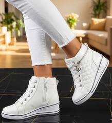 Beżowe sneakersy damskie na koturnie /B6-2 12824 T796/