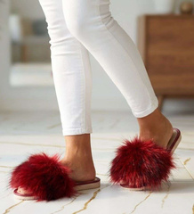 Marszczone klapki domowe z naturalnej skóry Pomarańczowe /C1-1 4828 S174/
