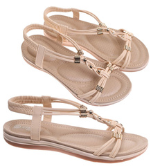 Beżowe paseczkowe sandały damskie wsuwane /E1-2 17916 W235/