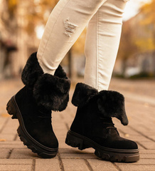 Zimowe botki trapery z wywijaną cholewką Czarne /G3-3 18529 T288/