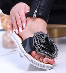 Plażowe czarne klapki z ozdobą /G6-1 14013 T190/