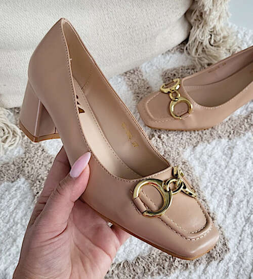 Cieliste czółenka damskie na klocku /A3-2 15226 T293/