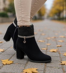 Damskie czarne botki na niskim obcasie /E10-3 12579 T145/