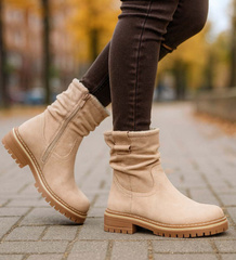 (ilość produktów: 2)Zimowe botki saszki z ociepleniem Beżowe /B6-1 18546 G388/