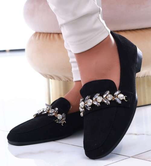 Czarne ażurowe baleriny damskie /F3-217259 W3/
