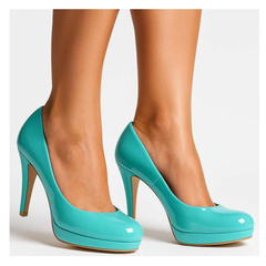 Miętowe czółenka szpilki na platformie /E3-2 8118 S176/