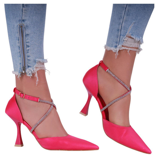 Czerwone czółenka szpilki z cyrkoniami /F10-3 17213 G121/
