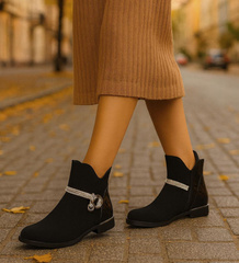 (ilość produktów: 7)Czarne botki damskie ocieplane z ozdobą /F2-2 18417 W4/