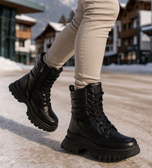 Sznurowane czarne śniegowce damskie /C7-1 18607 T366/