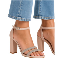 Kobiece sandałki z cyrkoniami beżowe /13042 E9-3 T797/