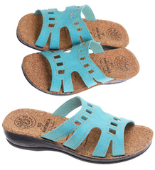Turkusowe klapki na niskim obcasie /H2 14310 T005/