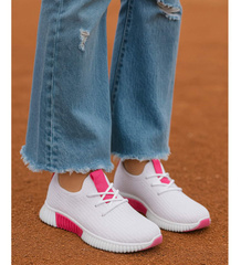 Wsuwane ażurowe biało różowe buty sportowe /E5-3 17989 T281/