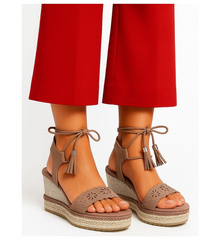 Camelowe sandały na koturnie i platformie /D8-3 14057 S291/