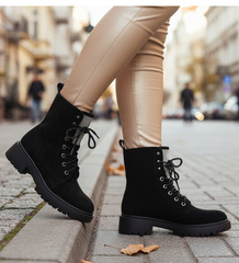 Zamszowe botki damskie khaki /J5-3 18553 W222/