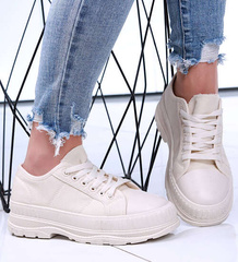 Beżowe trampki damskie na platformie /G8-3 15774 T138/
