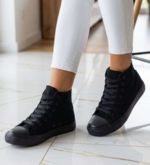 Klasyczne czarne trampki damskie z wysoką cholewką /H2 16707 G9-84/